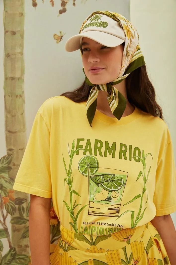 t-shirt fit estampada caipirinha. confeccionada em tecido leve e confortável, apresenta modelagem clássica com gola redonda e mangas curtas. as cores vibrantes e design exclusivo trazem um toque casual e alegre para o dia a dia. perfeita para combinações descontraídas e momentos especiais. esta é uma peça exclusiva da coleção FARM RIO original - alto verão 25.